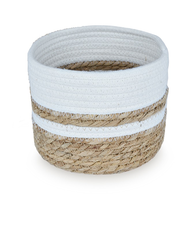 cesta seagrass y algodon 13 cm. de alto 15 cm. de diámetro